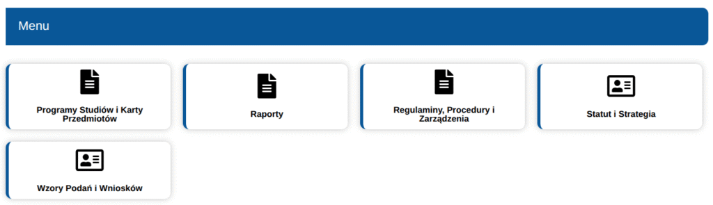 - wybór odpowiedniej kategorii z menu,
